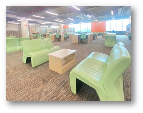 It can accommodate approximately 220 users at a time and is designed with ample lighting and a calm atmosphere to enhance the reading experience. Users are kindly requested to observe silence and help maintain a peaceful environment.