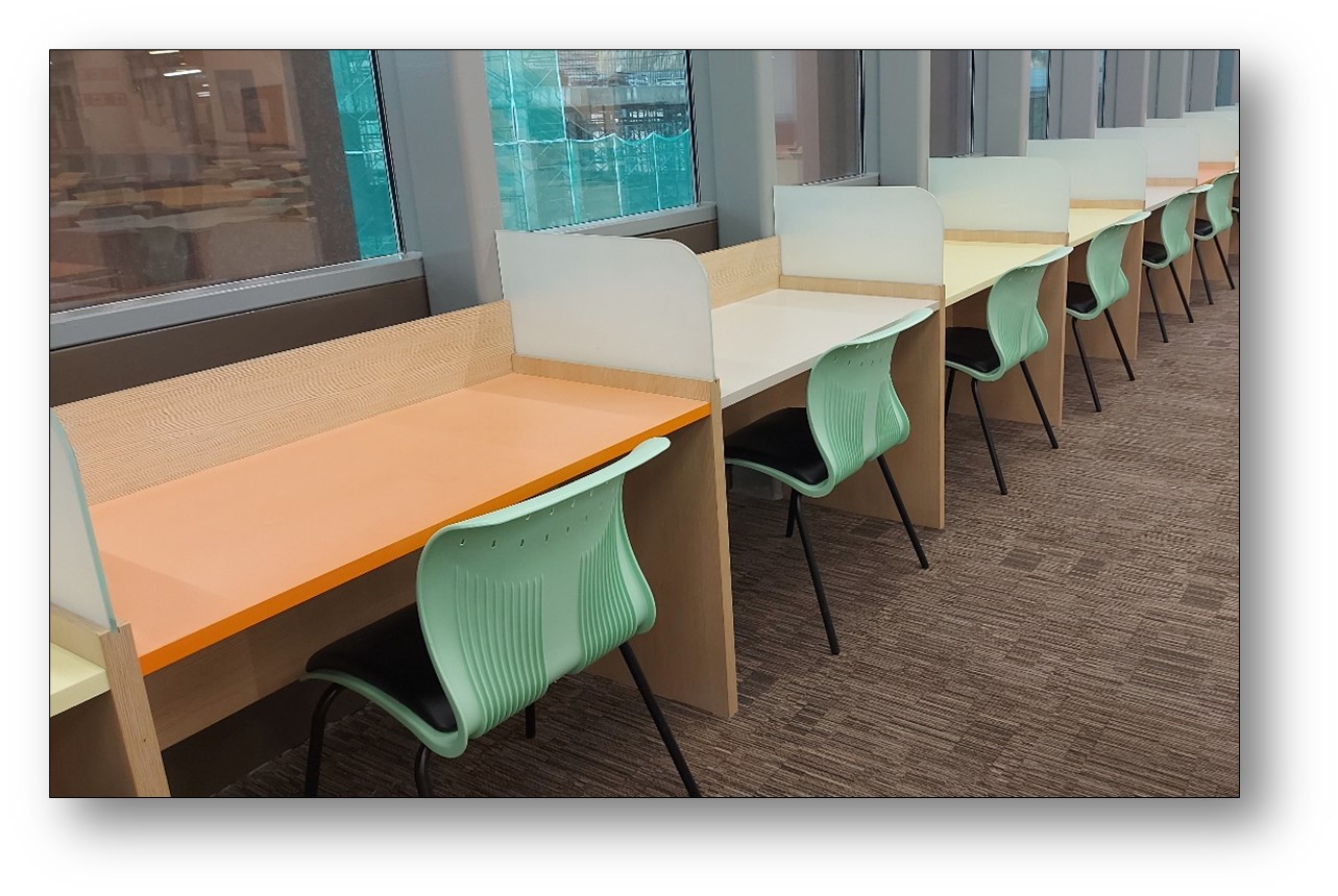 There are 12 individual study carrels available, designed to offer users a quiet and private environment for focused study.