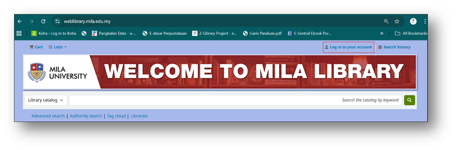 Access WebOPAC at: https://weblibrary.mila.edu.my